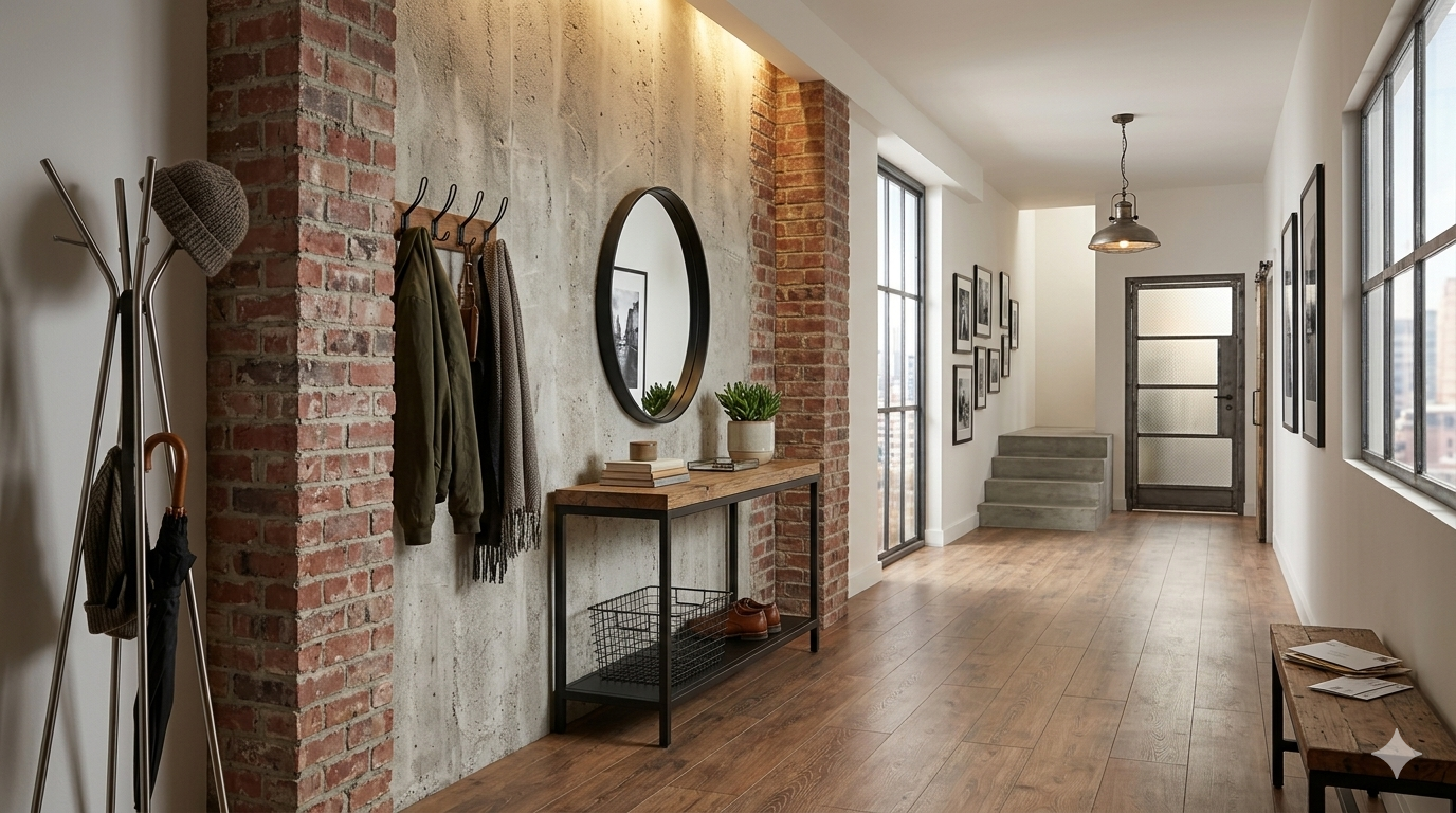 W aranżacjach industrialnych konsola często pełni rolę subtelnego punktu centralnego. Nie jest tak duża jak komoda, ale zapewnia wystarczającą powierzchnię, aby uporządkować przestrzeń. Dzięki temu przedpokój staje się bardziej uporządkowany, a wnętrze nabiera charakteru.